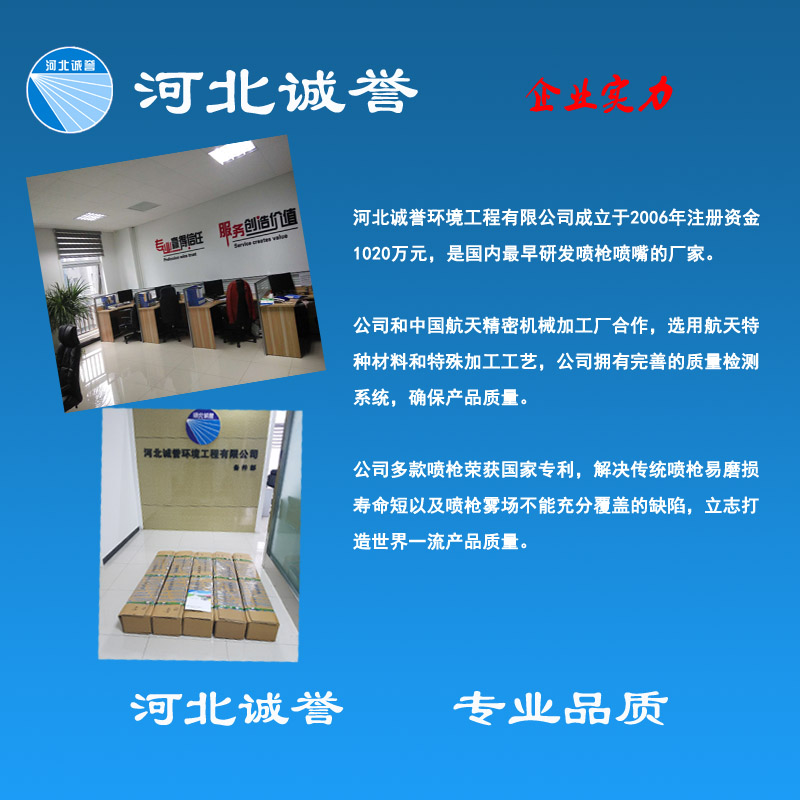 增濕塔噴槍良好的霧化效果是保證噴霧降溫系統(tǒng)正常、穩(wěn)定運行的關(guān)鍵。河北誠譽新型增濕塔噴槍是我公司研發(fā)人員在充分吸收傳統(tǒng)噴嘴噴槍優(yōu)點的基礎(chǔ)上,進(jìn)行內(nèi)部結(jié)構(gòu)改造而研制成功的一種新型產(chǎn)品,